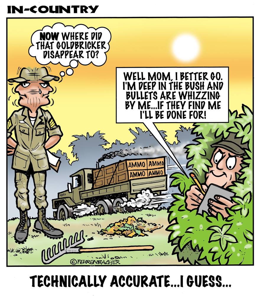 Phil enlisted in the Army in 1965 where you served for years in Vietnam.  He became a graphic designer and has worked for the state of Oregon for 26 years.  He retired in 2003 and started the Cartoon "In-Country".  The cartoons reflect his experiences during his tour of duty in South Vietnam.