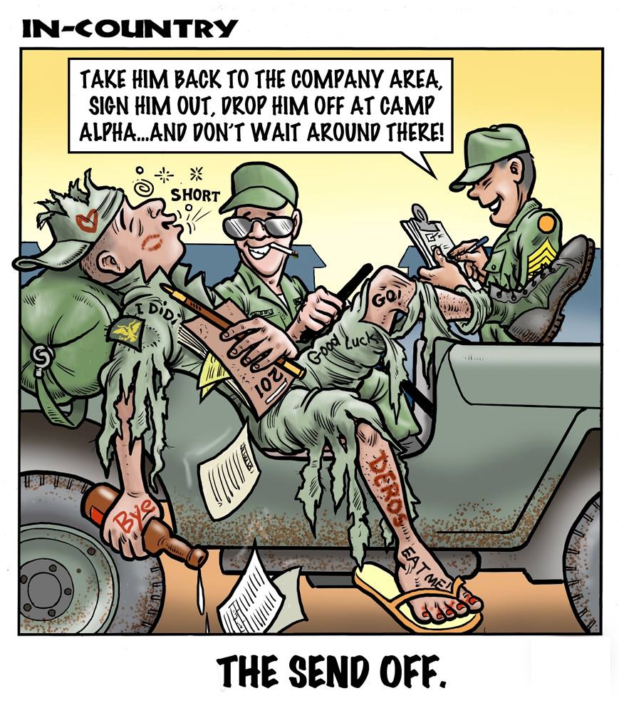 Phil enlisted in the Army in 1965 where you served for years in Vietnam. He became a graphic designer and has worked for the state of Oregon for 26 years. He retired in 2003 and started the Cartoon "In-Country". The cartoons reflect his experiences during his tour of duty in South Vietnam.